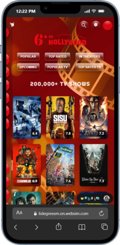 - Jump between actors, directors, and producers to trace your own 6° of Hollywood connections