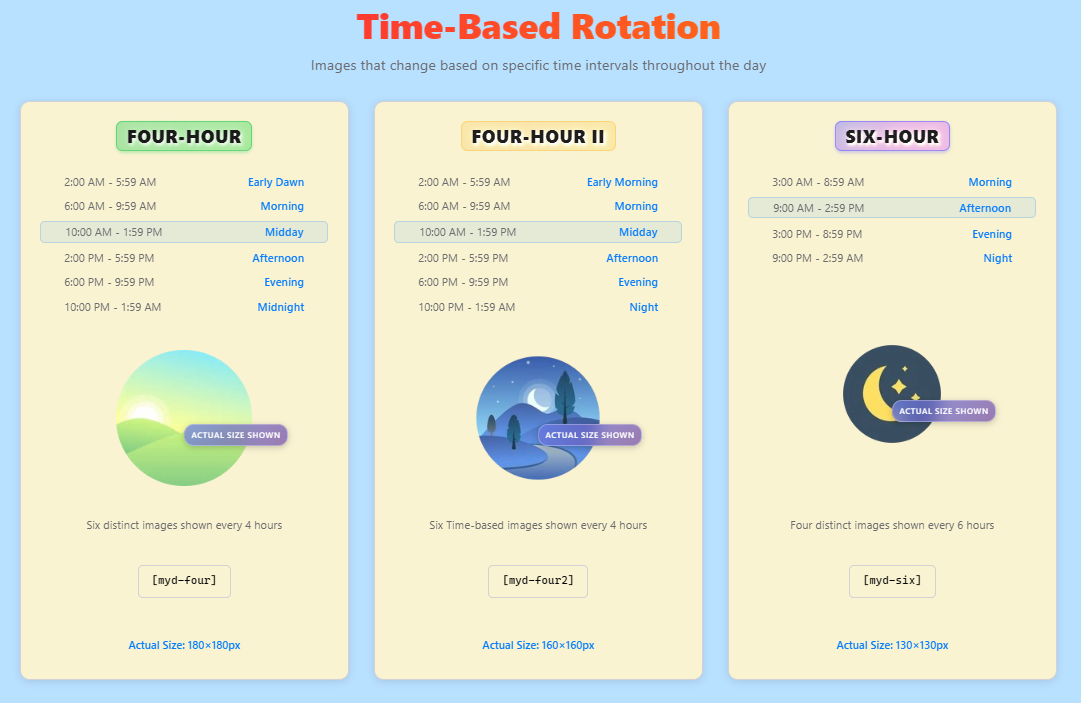 Display custom images based on time, date, and other logic — intelligent imagery that adapts to context automatically.